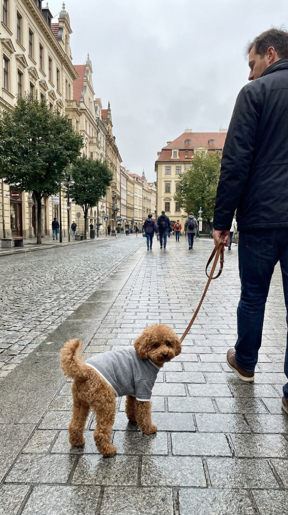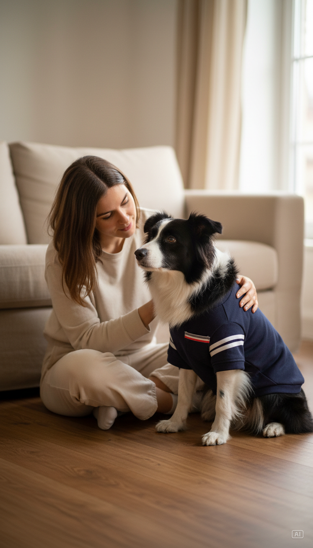 Кучето изглежда по-елегантно и добре поддържано, със стилно и премиум излъчване.